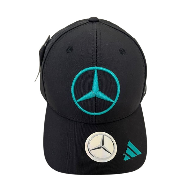 O Power do Preto: Este Boné Mercedes-AMG PETRONAS Formula One Team combina o clássico preto com um toque de cor vibrante. O grande destaque é o logo da Estrela de Três Pontas bordado na frente em um chamativo tom de verde água, a cor icônica da patrocinadora Petronas.